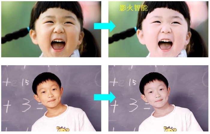 选取国内同类产品中普及较多的美图秀秀作为对比测试,对比我们的算法和美图秀秀二者的效果。这里美图秀秀最新版本3.9.6 (2014),分别采用一键美化(全自动)、美白+智能磨皮 (需手动调整美白参数,为了效果最好,选择最大美白和肤色参数)。我们选取上述比较有代表性图像作为测试样本。